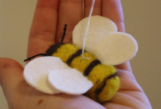 needle felted body, wool felt wings