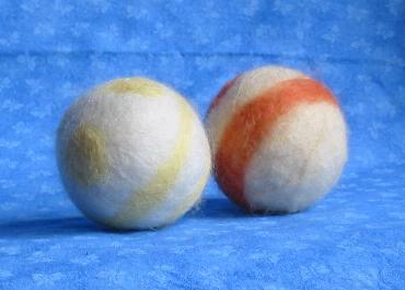 wet felted balls (done by hand, no help from the washing machine or