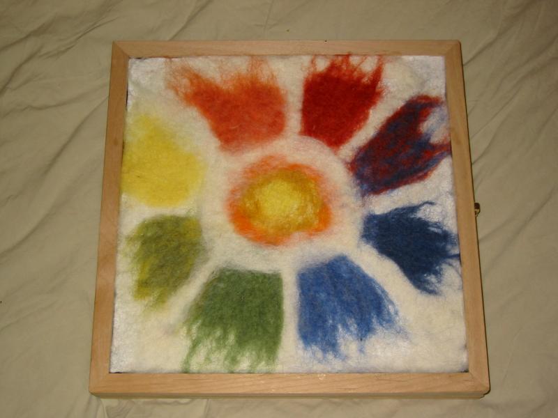 wet felted picture on a base of a sheet of wool felt (cover of a
