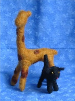 the animals are wet felted. originally the giraffe came out more