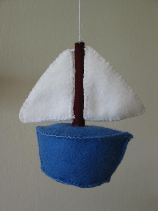 sailboat, originally made to be part of a sea theme mobile, now one of