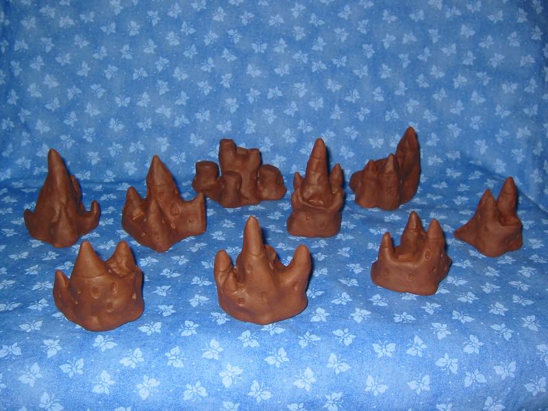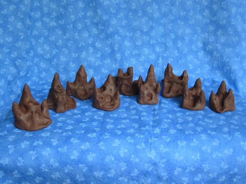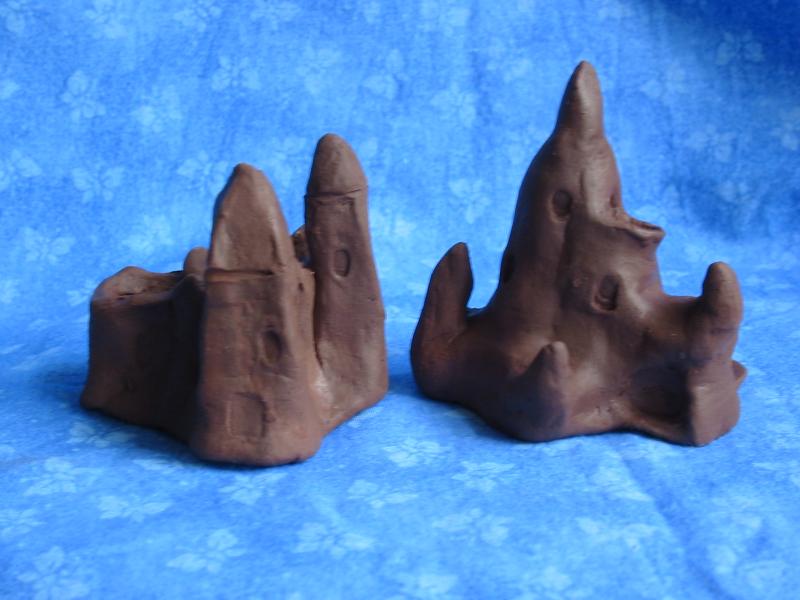 series of clay sand castles I made for a swap. these are still wet and