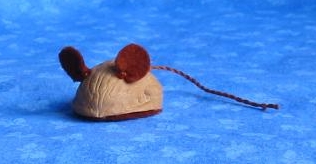 mouse made from a walnut shell. I drilled small holes for the ears and